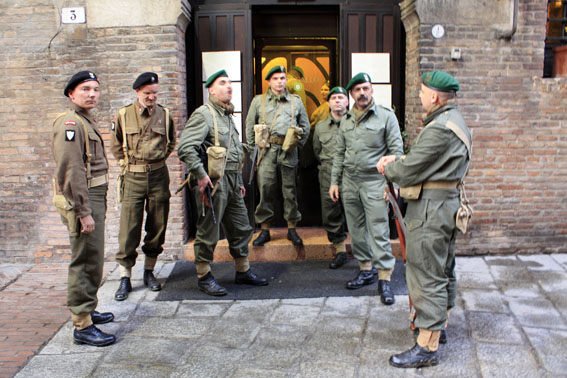 Sobota to dla nas wreszcie upragnione spotkanie z Kombatantami oraz udział w uroczystościach, jako iż pogoda w „Słonecznej Italii” tym razem nas nie rozpieszczała i pierwsza część uroczystości została przeniesiona do pobliskiego kościoła. Następnie wraz z całą delegacją udaliśmy się na cmentarz złożyć wiązanki kwiatów. Po czym udajemy się do centrum miasta odszukać historyczną restaurację Al Pappagallo, w której to Henryk Jedwab świętował wraz z przyjaciółmi zdobycie Bolonii. Następnie bierzemy udział w uroczystościach przy Porta Maggiore oraz w Parku im Generała Andersa, po których wraz ze Stowarzyszeniem „Pancerny Skorpion” w asyście Policji ruszamy na Boloński rynek. Wieczorem całą rekonstruktorską ferajną udajemy się na uroczystą kolację przygotowaną przez miejscową Polonię.