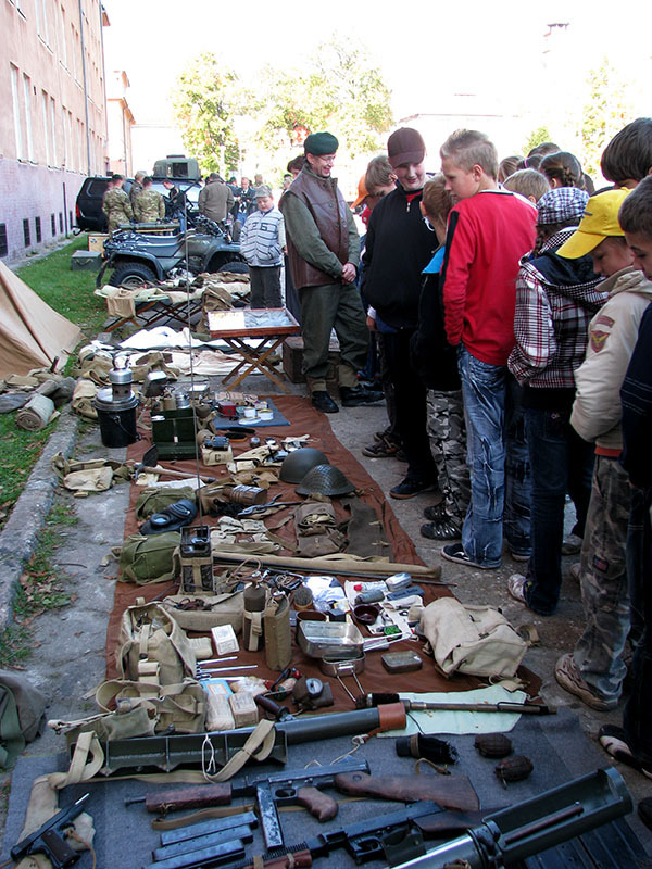 Czwartek to dzień przeznaczony dla gości z cywila: "Dzień otwartych koszar". Od samego rana rozkładamy nasze stanowisko z pamiątkami po 1 Samodzielnej Kompani Commando. Jest tam wszystko co było potrzebne ówczesnemu komandosowi. Ze Swarzędza przywieźliśmy pełną gamę mundurów, ekwipunek osobisty, repliki broni, środki łączności, pamiątki z pola bitwy Monte Cassino oraz Willysa. Tuż obok nas swój ekwipunek prezentowali gospodarze: broń różnego kalibru, sprzęt nurkowy i łączności specjalnej, quady i pick up-y.